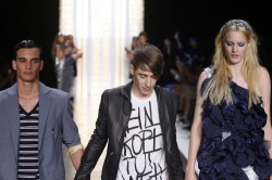 Bei den Männern bestimmten sommerliche, kurze Hosen die Kollektion. Sie wurden zu überlangen, lässigen Oberteilen und fein geschnittenen Jackets getragen. Asymmetrien entstehen durch das Spiel mit Teilungsnähten auf Stoffen wie Seide und Baumwolle. Auch bei den Männern kommen metallisch anmutende Stoffe zum Einsatz und bieten neben den mit Swarovski-Steinen besetzten Sandalen einen funkelnden eye-catcher.